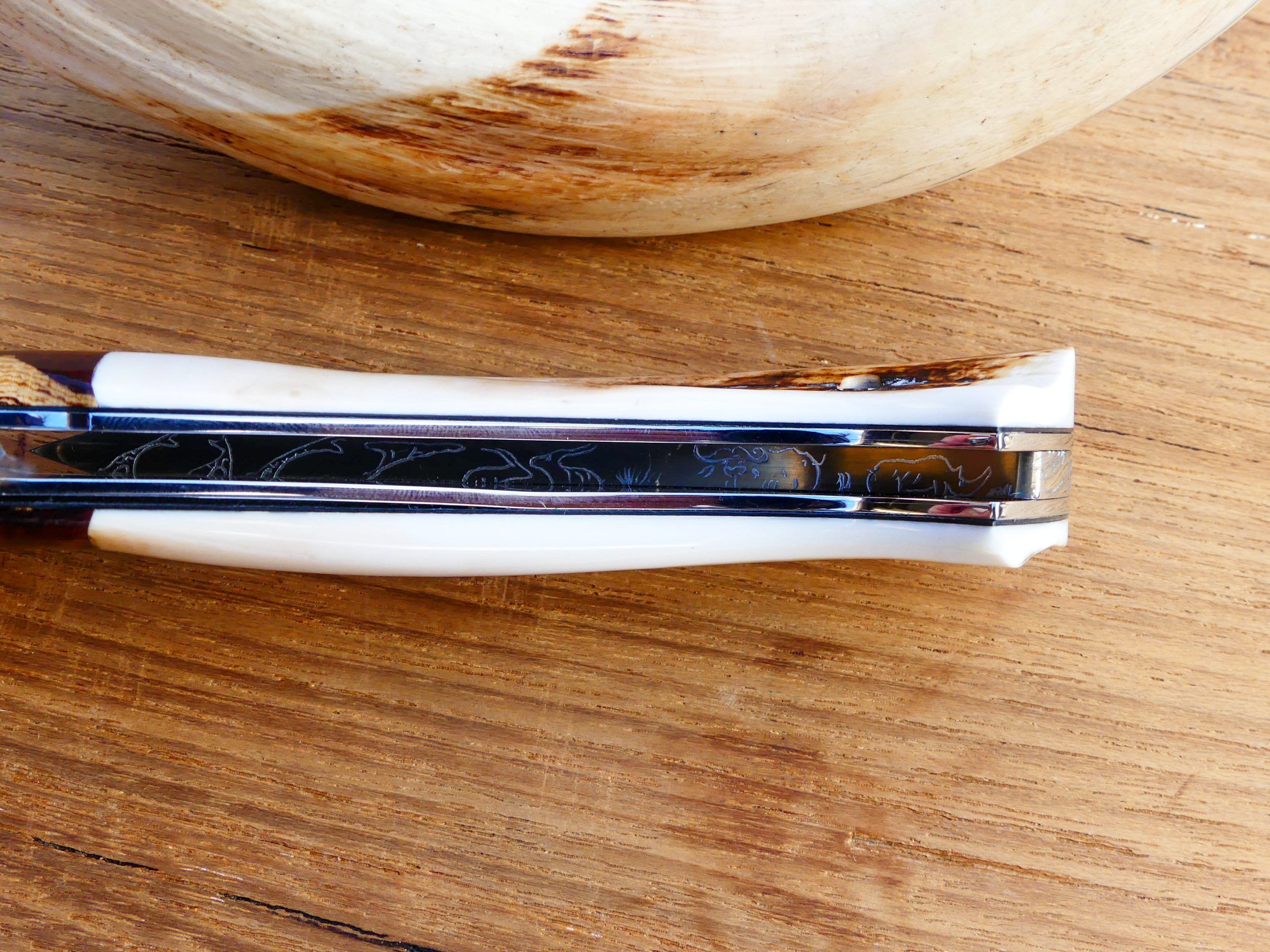 A l’intérieur de l’entretoise est gravée une scène de la savane.