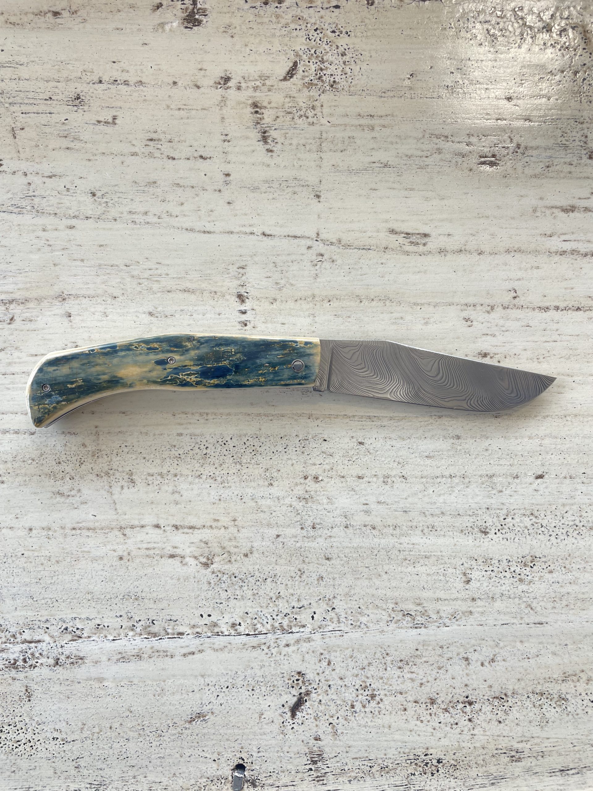 Couteau de Maxime Surjous d’une dimension de 11cm fermé et de 20 cm ouvert.